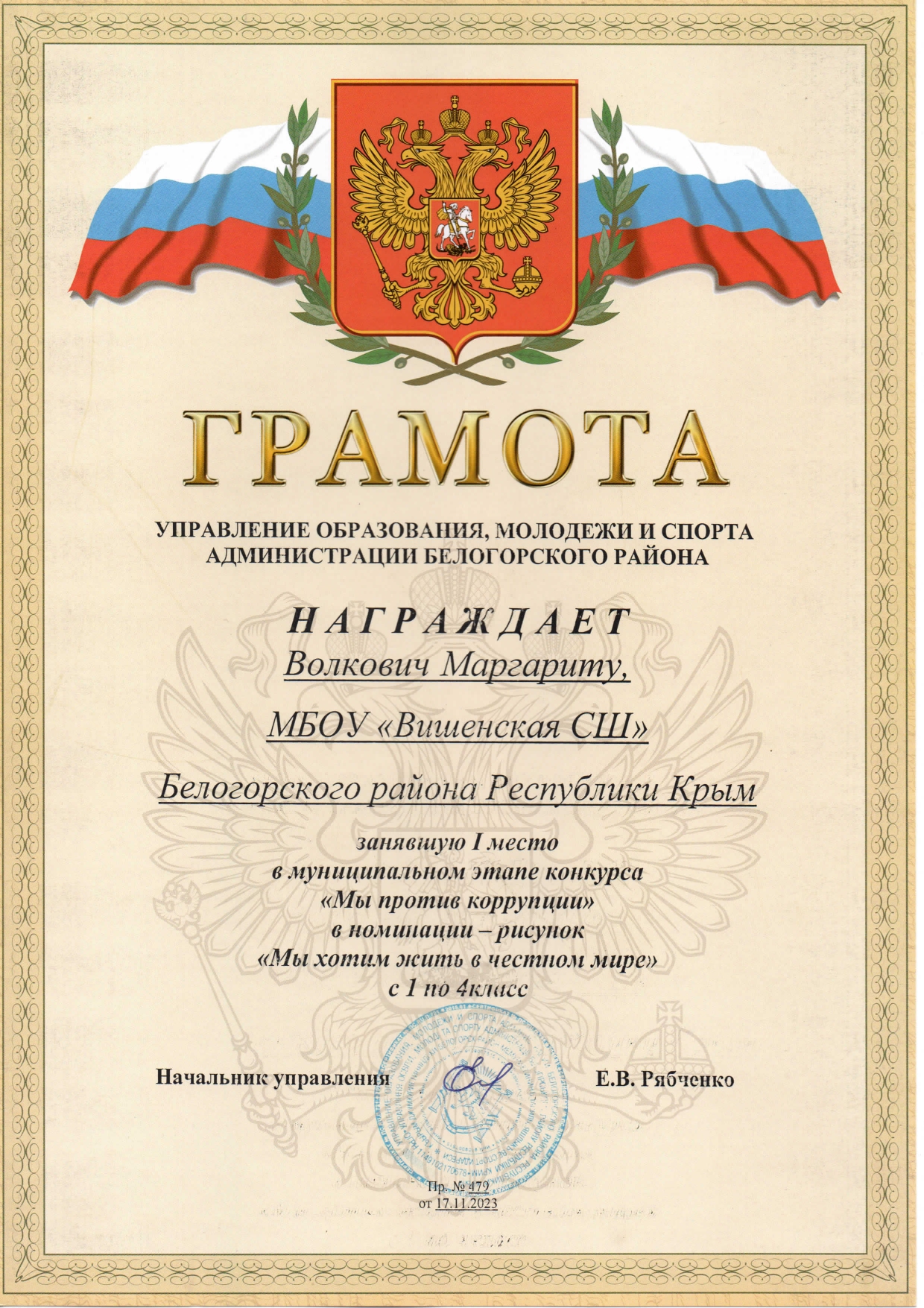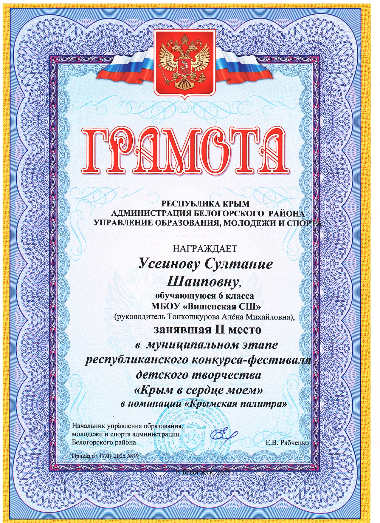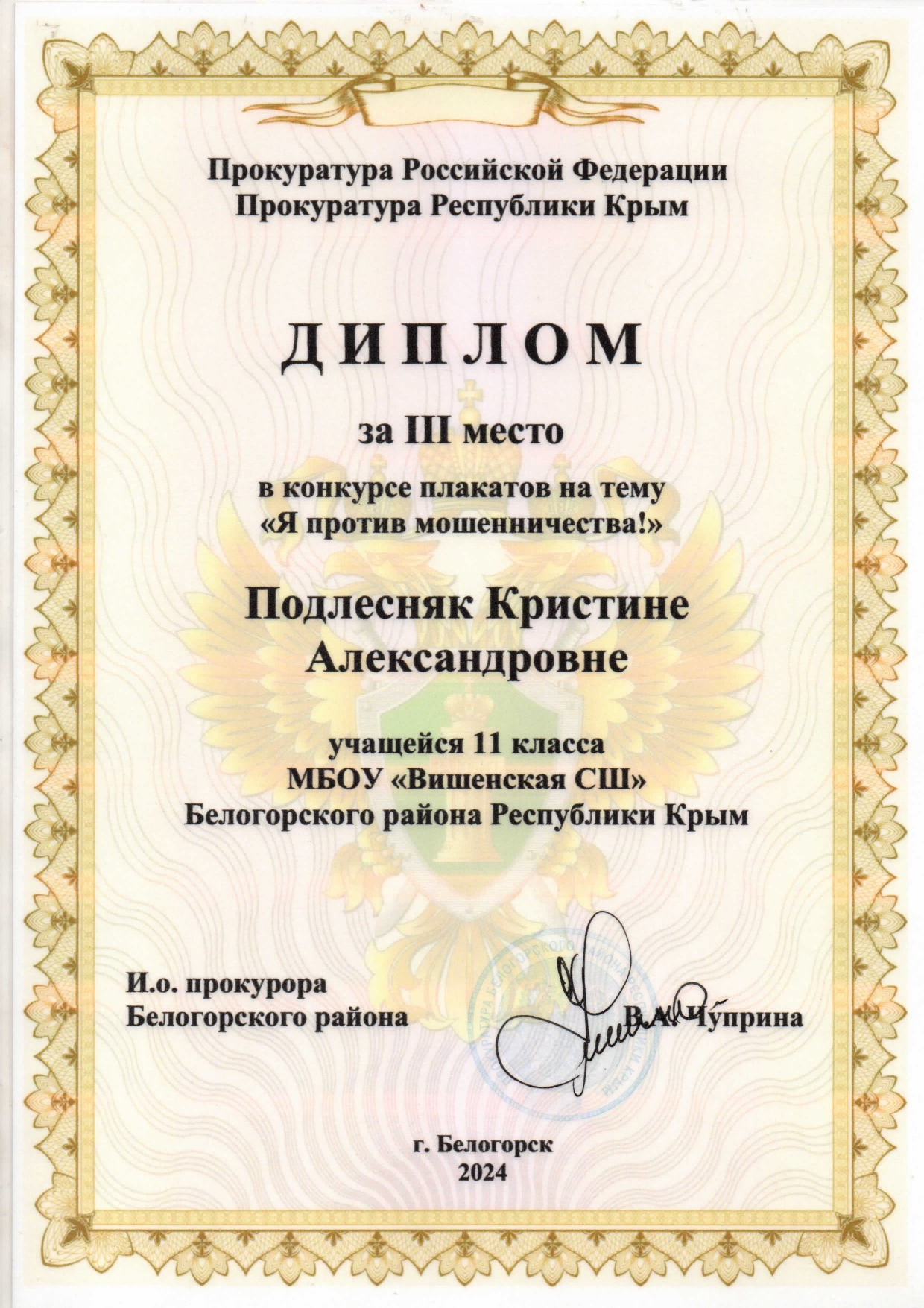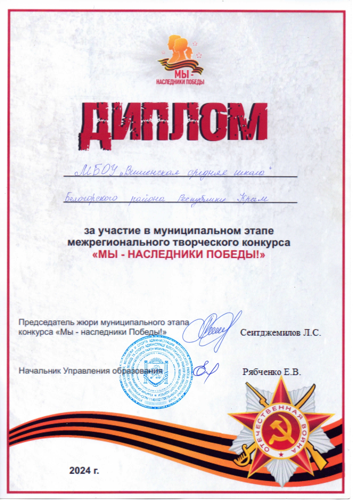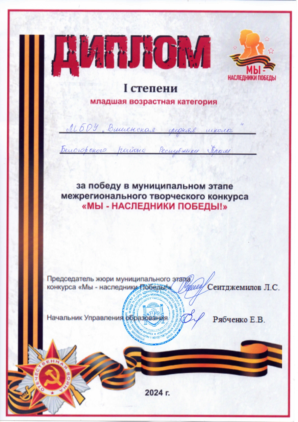 Муниципальное бюджетное общеобразовательное учреждение «Вишенская средняя школа» Белогорского района Республики Крым
